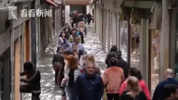 2018年10月29日,意大利北部遭遇極端天氣,狂風(fēng)和暴雨引發(fā)洪水?!八恰蓖崴?5%被水淹沒,水位上漲至十年來最高,游客不得不趟水前進(jìn)。?